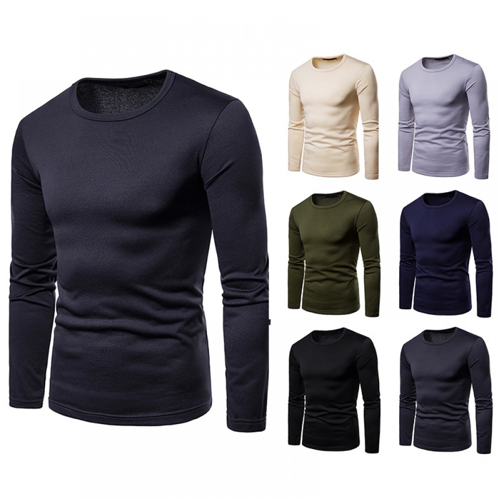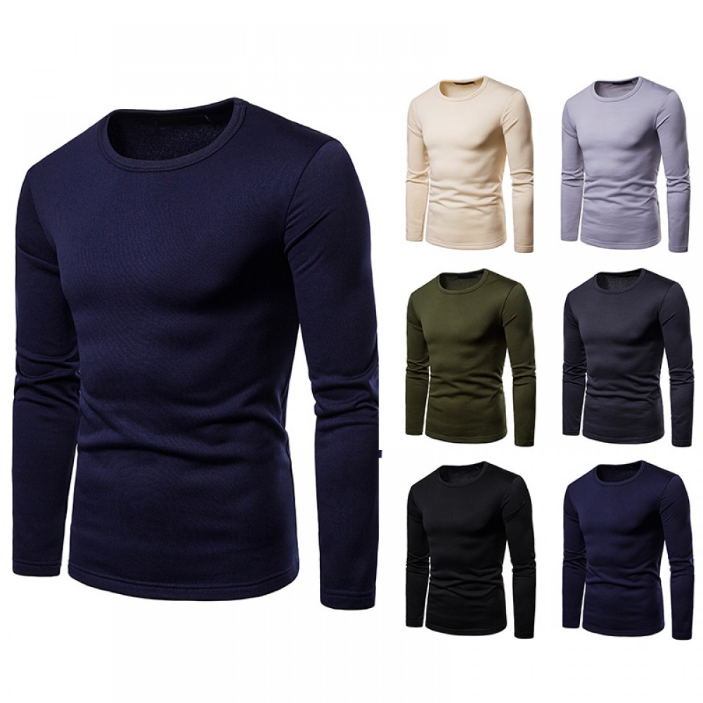 Men's Plus Size Velvet Warm Round Neck Long Sleeve T-Shirt Bottoming Shirt