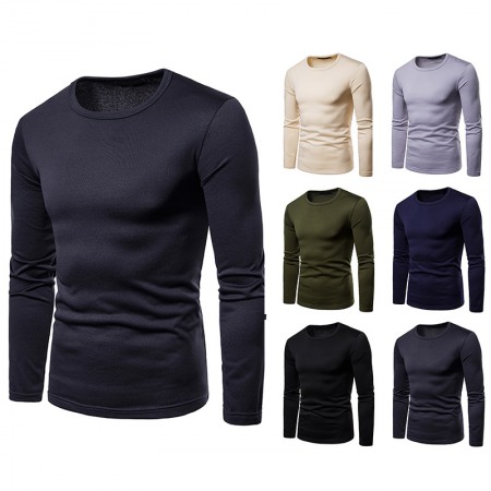 New Long-Sleeved T-Shirt Men's Casual Pile Collar Hit Color Slim Bottoming Shirt
